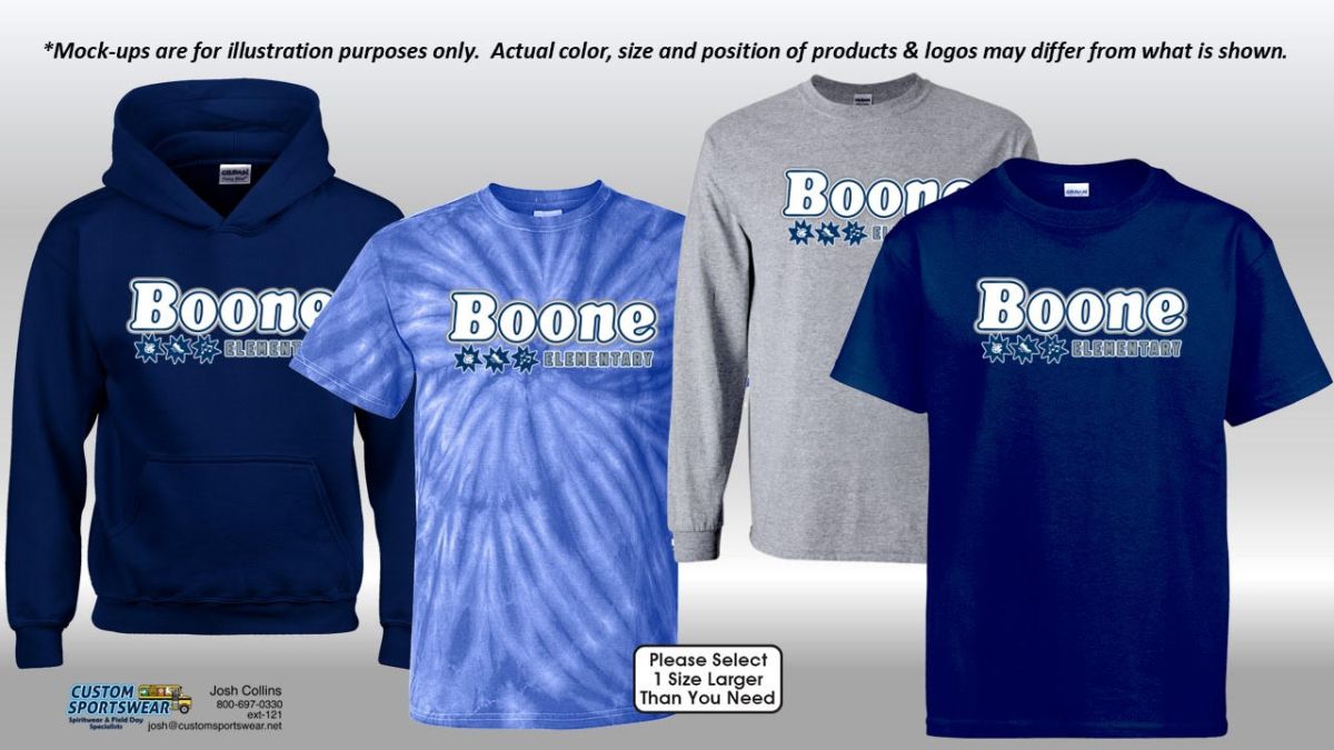The specials team has put together some cool Boone sweatshirts & Tshirts if anyone is interested! The proceeds will got to help support our Specials Activity Funds! WE ONLY HAVE A 2 WEEK WINDOW to purchase them...so they can all be here in time for the Holidays!